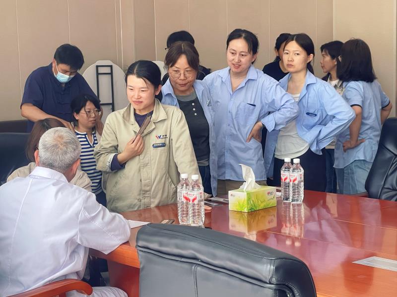 万特电气深知每一位职工都是公司发展的坚实基石,一直以来,始终将职工的身心健康放在重要位置。为切实解决职工健康困扰,让大家足不出厂就能享受专业的诊疗服务,公司工会精心筹备,特邀桐君堂资深中医专家亲临现场,为职工们带来了一场贴心暖心的义诊活动。
